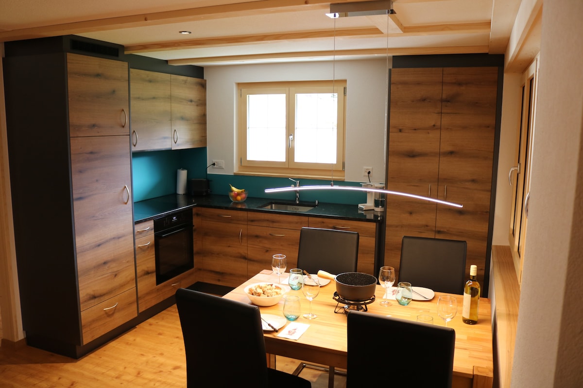 Íbúðin þín, sem er í háum gæðaflokki, er staðsett á jarðhæð í einbýlishúsaskálanum okkar. Íbúðin er hljóðlát og miðsvæðis. Það er um 5 mínútna göngufjarlægð frá miðbænum, þar sem eru ýmsar verslanir, veitingastaðir. Waldrand-strætisvagnastöðin ( lína 280) er í innan við 100 metra fjarlægð. Með Simmental kortinu geturðu notað allar rúturnar ókeypis á öllu Lenk. Góð verönd býður þér að dvelja og slaka á.