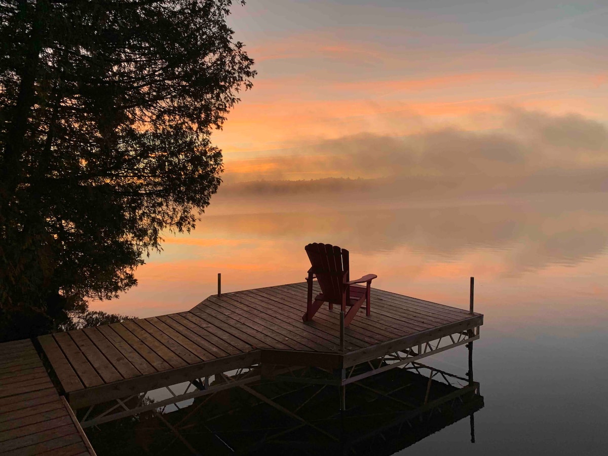 Strandpallur með útsýni yfir Weslemkoon-vatn.