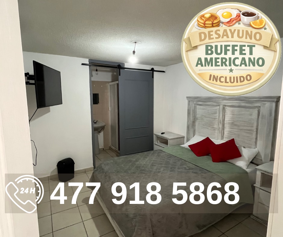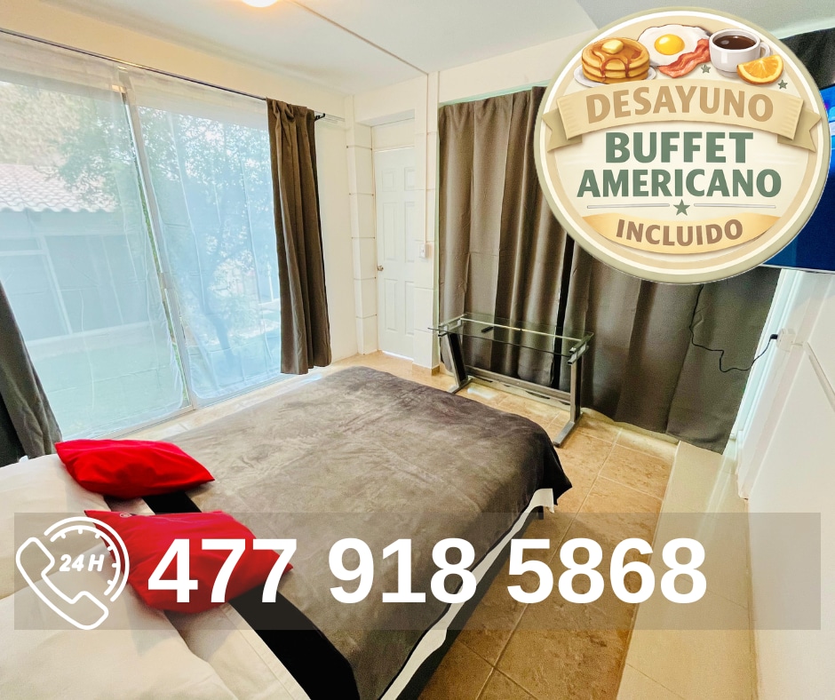 Ubicado en un lugar céntrico y tranquilo en la ciudad, a 5 minutos en coche de la central camionera, el estadio de futbol, la feria, Poliforum, El Forum Cultural y a 15 minutos del centro. Un lugar perfecto para parejas y familia pequeña o estadías de trabajo que buscan comodidad y un ambiente tranquilo Cerca de supermecardos y gimnasio a 1 min. -Aire acondicionado -Wifi -Televisión de 32 pulgadas con cable -Cochera para coches chicos o medianos, también hay espacio para estacionar en la calle.