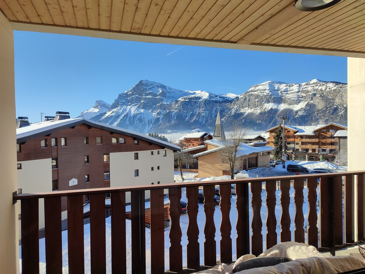 STUDIO 29 m2, centre du village, commerces, centre nautique, ski bus, crèche à proximité. Vue au Sud sur la Pointe d'Areu et la piste des Servages, pas de vis à vis. Situé au 2ème étage, coin montagne, une pièce de vie , un balcon exposé Sud avec vue. Garage fermé en sous sol. Ascenseur.