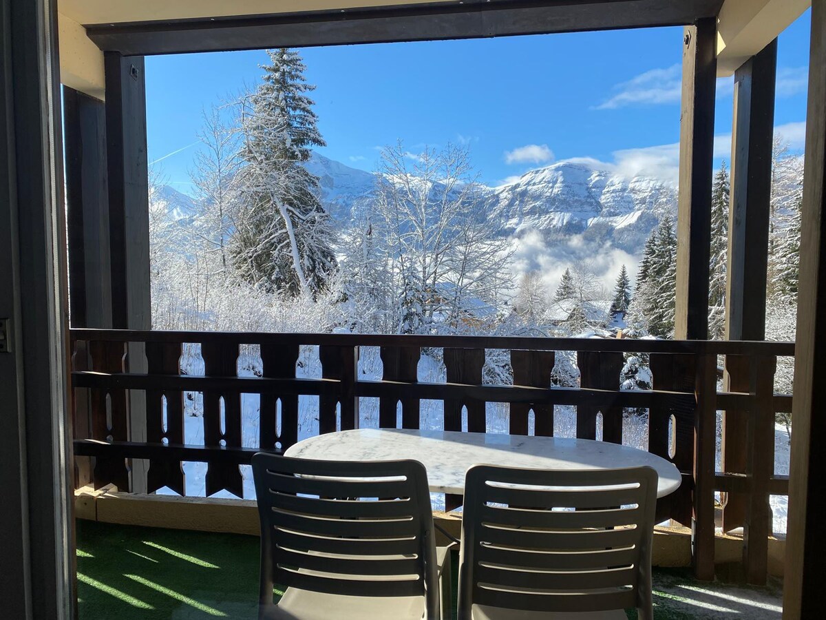 Nýlega hefur stúdíóið verið alveg endurnýjað, nýjar myndir eru í boði:) Mjög bjart stúdíó með mjög stórum svölum og frábæru fjallaútsýni og skíðabrekkum. Staðsett í miðborginni nálægt Place de l 'ambiance og í göngufæri frá helstu ókeypis skutlum að skíðabrekkunum.