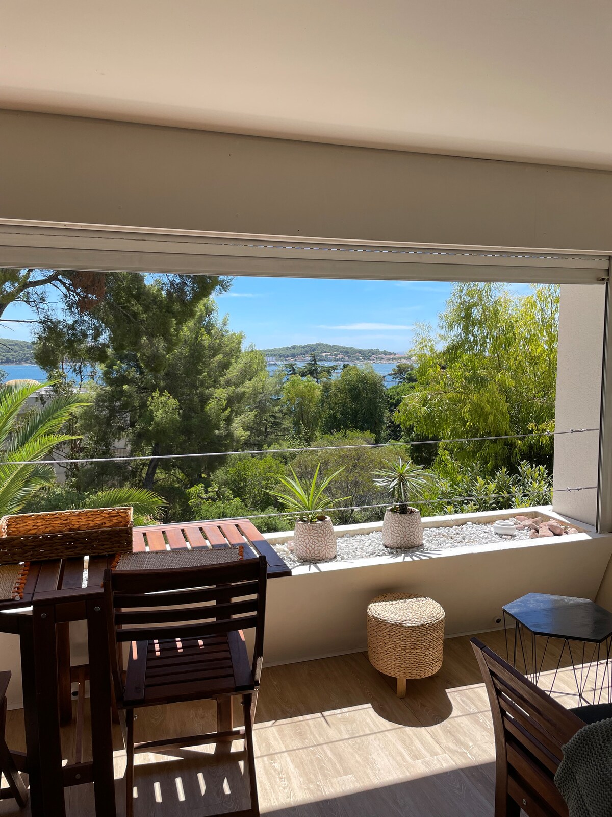 Falleg 48 m2 T2 með yfirgripsmikilli verönd með sjávarútsýni. Húsgögnum ferðamaður 3 stjörnur. 1. hæð án lyftu. 2 mínútna göngufjarlægð frá ströndinni. Port of La Coudoulière og ströndin beint fyrir framan. Íbúðin er staðsett á milli Sanary-sur-Mer sem er þekkt fyrir skarpa punkta og markaðinn sem er kosinn sá fallegasti í Frakklandi (<4 km) og litlu fiskihöfninni í Brusc og eyjunum Gaou og Embiez. (2 km). Nettenging með trefjum. Reiðhjólastígur. Rafhjólaleigustöð. Strætóstoppistöð á 2 mínútum.