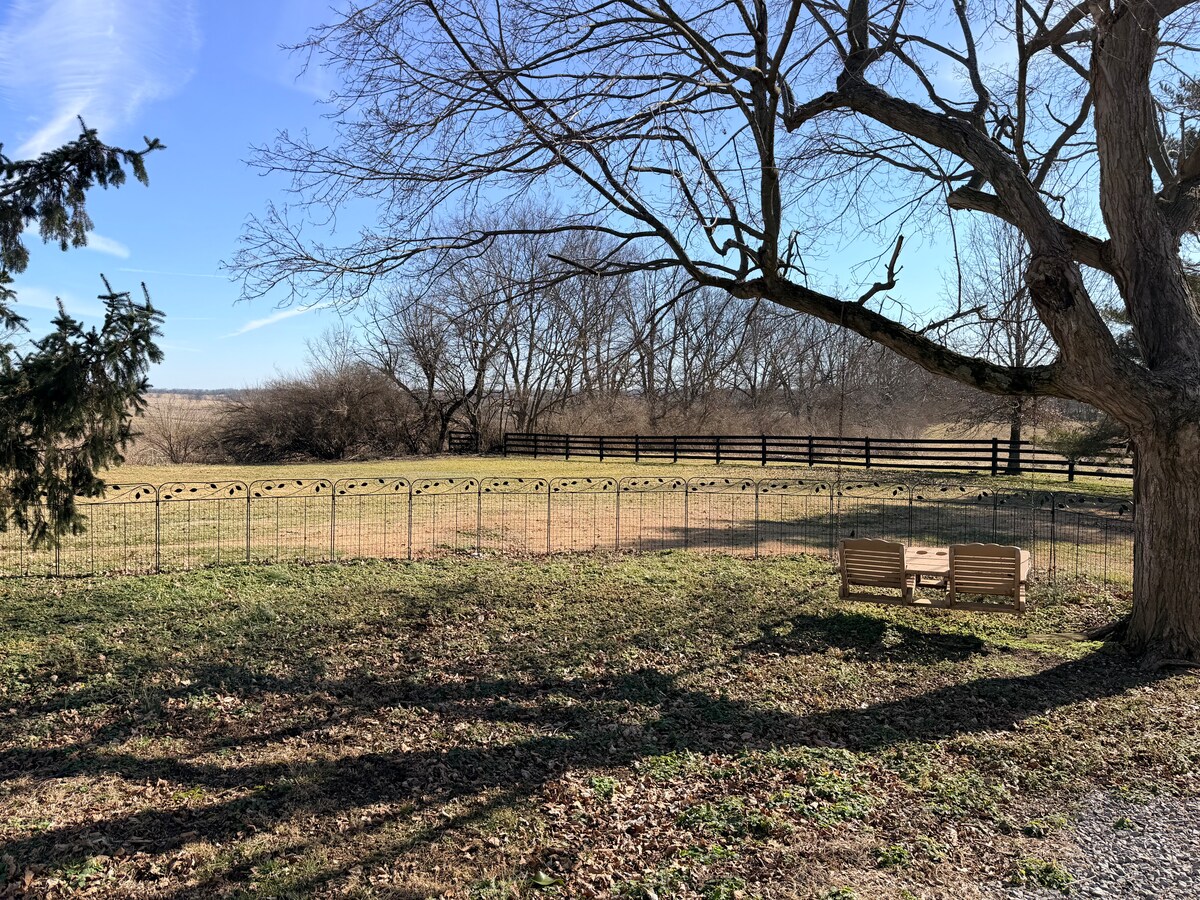 Hestafólk lætur sig dreyma og aðeins 5 mínútur frá Horse Park! Þessi uppfærði og fagmannlega bústaður er staðsettur á fallegu 120 hektara hestabýli í 5 mínútna fjarlægð frá Horse Park, í 10 mínútna fjarlægð frá Keeneland og flugvellinum og í 20 mínútna fjarlægð frá miðbæ Lexington. Það eru margar athafnir í nágrenninu eins og: kappreiðar, hestakeppnir, Woodford Reserve, Buffalo Trace og margt fleira!