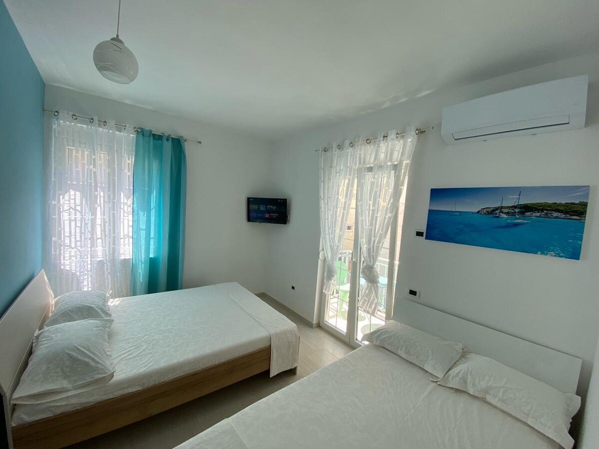 EIGNIN MÍN ER STAÐSETT Í MIÐJU SHẢNGJIN 50 METRUM FRÁ STRÖNDINNI. EIGNIN MÍN HENTAR VEL PÖRUM . ÞETTA ER TILVALINN STAÐUR FYRIR ÓGLEYMANLEGAR VACATIONS. EF ÞÚ ÆTLAR AÐ GISTA Í 7 DAGA EÐA LENGUR GETUM VIÐ SÓTT ÞIG Á TIRANA-FLUGVELLI