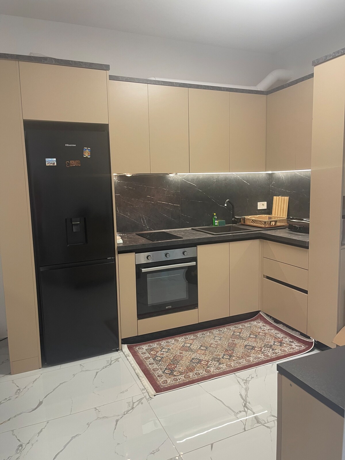 Gaman að fá þig í glæsilega dvöl í miðborg Lezha! Þessi nútímalega íbúð er staðsett í glænýrri byggingu og býður upp á allt sem þú þarft fyrir þægilega og þægilega heimsókn. Hvort sem þú ert hér vegna vinnu eða tómstunda hefur þú greiðan aðgang að verslunum, veitingastöðum og áhugaverðum stöðum á staðnum; allt er þetta steinsnar í burtu. Fullkomið fyrir fjölskyldur eða litla hópa í leit að notalegri og nútímalegri gistiaðstöðu.