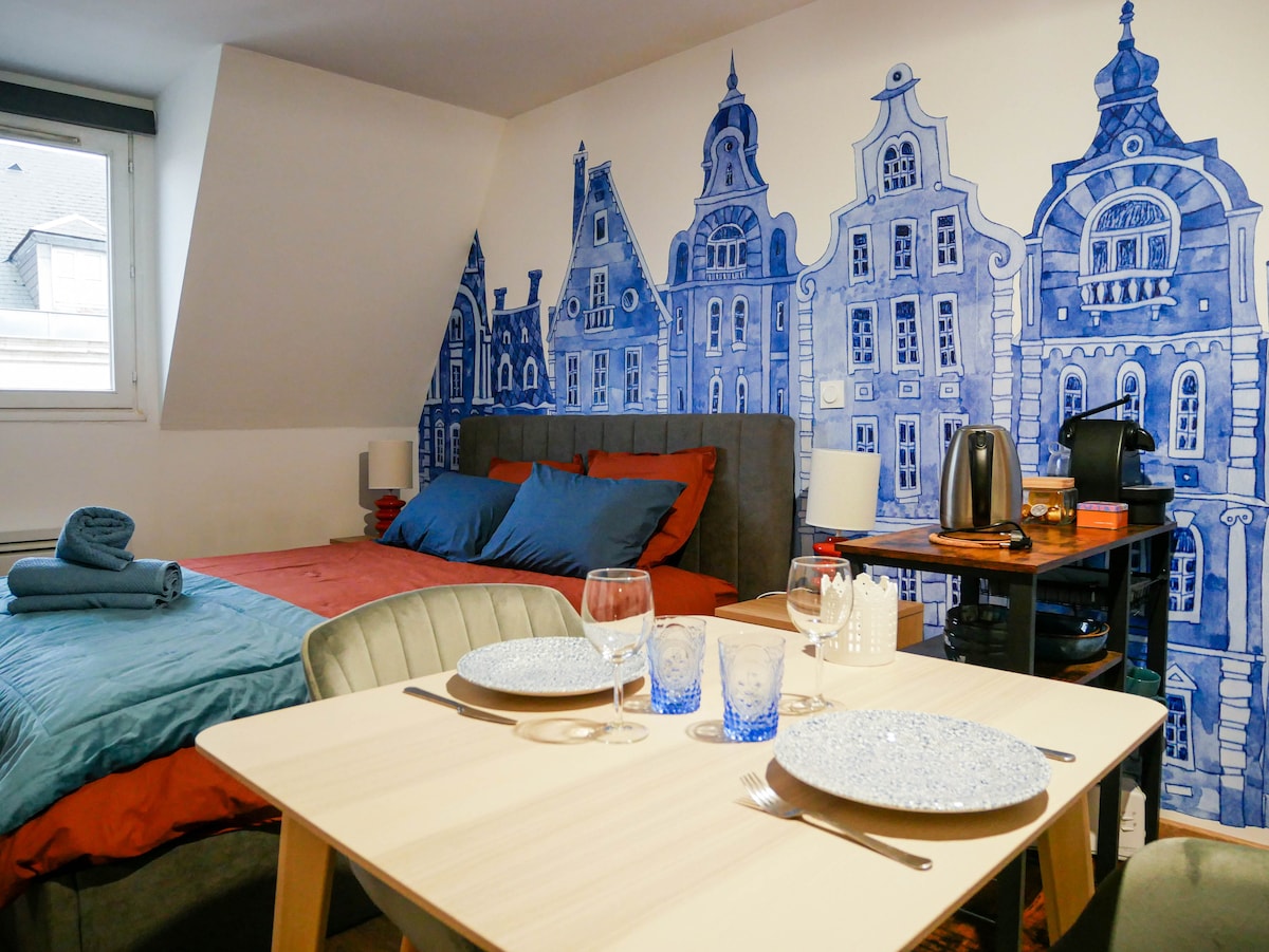 Íbúðin mín er í hjarta miðbæjarins, þó í rólegu hverfi og byggingu. Þú munt kunna að meta staðsetninguna og hverfið sem er fullt af sögu. Fullkomið fyrir pör, staka eða viðskiptaferðamenn. --- Íbúðin mín er í hjarta sögulega kjarna Saint-Omer. Byggingin og hverfið í kring eru engu að síður kyrrlát. Þú munt kunna að meta þægilega og fallega staðsetninguna. Tilvalinn fyrir pör eða viðskiptaferðamenn sem eru einir á ferð.