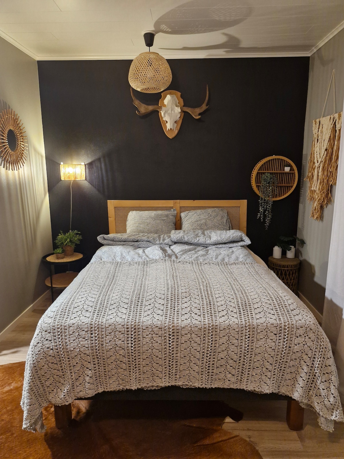 Íbúð á annarri hæð í enda einbýlishúss. Kóðalás á dyrum. Eignin er staðsett norðan við Oulu við hraðbrautina nálægt Ideapark Oulu. Í íbúðinni er hjónarúm og svefnsófi Karup design (stærð 140x200). Eldhúsið er vel búið, t.d. með spanhelluborði og innbyggðri uppþvottavél, ísskáp og frysti. Kaffi- og vatnsketill ásamt örbylgjuofni er að finna í morgunverðarskápnum. Þvottavél á baðherberginu. Ókeypis bílastæði.