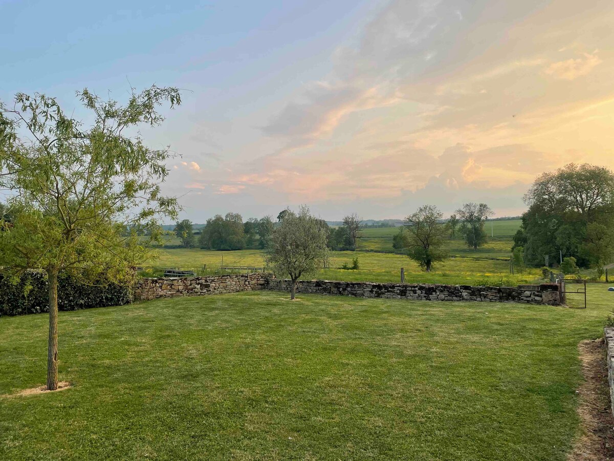 Country hús, mjög rúmgott (108m²) tilvalið fyrir allt að 4 til 5 manns, rólegur, stór einkagarður með útsýni yfir Amognes. mjög stórt hjónaherbergi (30 m²) og fallegar stofur. 20 mínútur frá Nevers, 30 mínútur frá Canal du Nivernais, getur þú notið fjölda starfsemi (Merle eða Baye tjörn, gönguferðir, hjólreiðar, gönguferðir, veiðar, staðbundnir markaðir, go-kart, Magny-Cours). bakarí í 6 mínútna fjarlægð, verslanir í 10 mínútna fjarlægð. Þetta friðsæla heimili býður upp á afslappandi dvöl fyrir alla fjölskylduna.