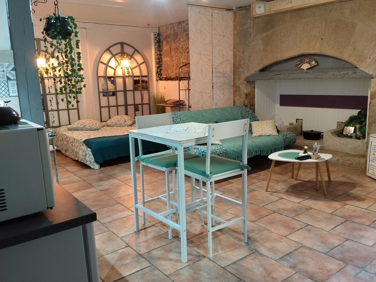 Uppgötvaðu óhefðbundna gistiaðstöðu í hjarta hellis í Mussidan sem býður upp á notalegt og töfrandi andrúmsloft. Þetta óhefðbundna rými er hannað sem sannkallað ástarherbergi og sökktir þér í heillandi heim með veggjum og lofti þakið blómum sem skapar hlýlegt og rómantískt andrúmsloft. Þessi óvenjulegi staður er tilvalinn fyrir paraferð og blandar saman náttúrunni og þægindum fyrir tímalausa upplifun.