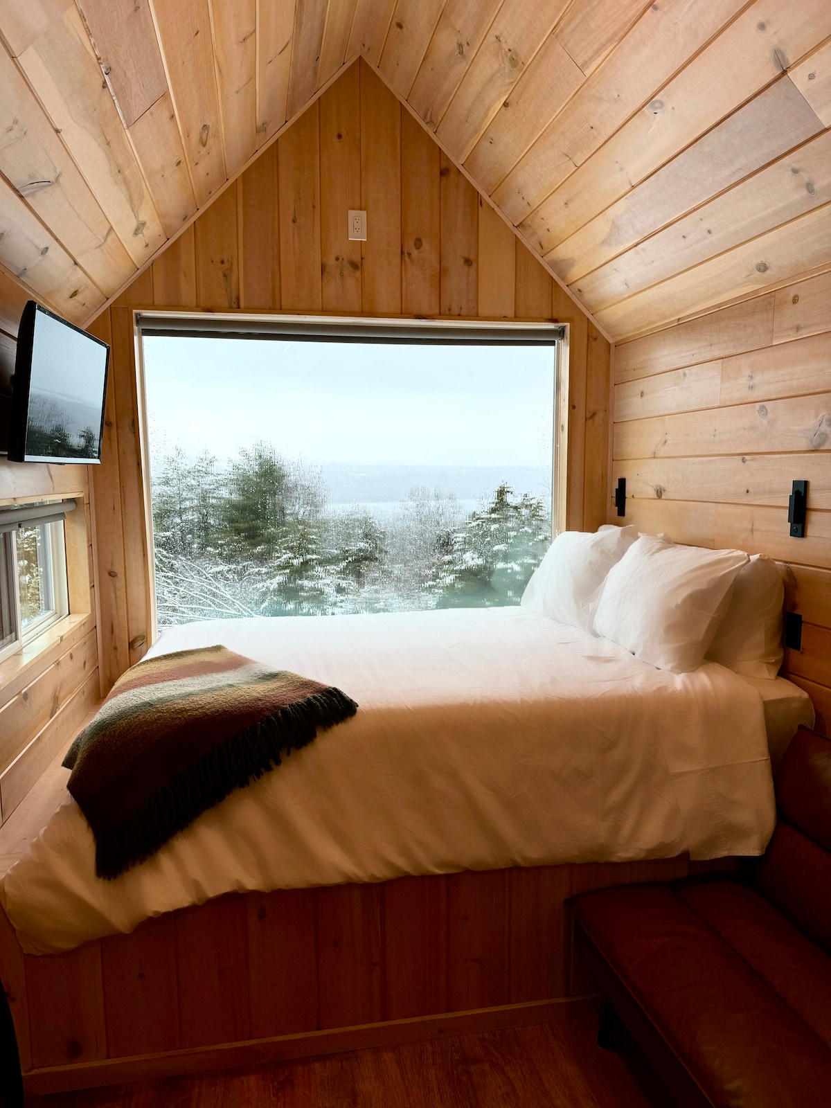 Nestled up on a hill overlooking Seneca Lake, watch the sunset while lay in bed or from your own patio with a fire crackling. Við erum gestgjafar á staðnum og munum sjá til þess að dvöl þín verði ógleymanleg! Allt sem þú gætir viljað gera í Finger Lakes er innan seilingar. Wineries galore, two even just next door, multiple breweries nearby, minutes to the lake, 15 minutes to downtown Watkins Glen, 10 minutes to hiking trails at the national forest, or stay in, relax, and enjoy the view!!