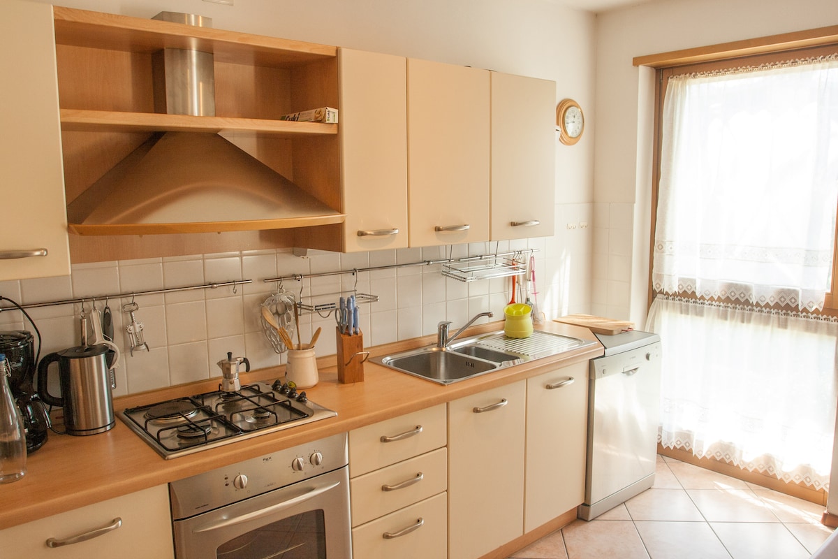 Ótrúleg 100 m2 íbúð á 3. hæð í þriggja hæða húsi í sögulegum miðbæ Torbole, 100 metrum frá Garda-vatni. Notalegt með svölum með útsýni yfir stöðuvatn, 3 svefnherbergi (eitt með möguleika á þriðja rúmi án endurgjalds) 2 baðherbergi + sturta, stofa / borðstofa og eldhús með örbylgjuofni og uppþvottavél. Læst herbergi í innri húsagarðinum fyrir brimbretti og reiðhjól þar sem einnig er laust bílastæði (1 bíll, engir sendibílar) 10% afsláttur af gistingu sem varir lengur en 7 nætur.