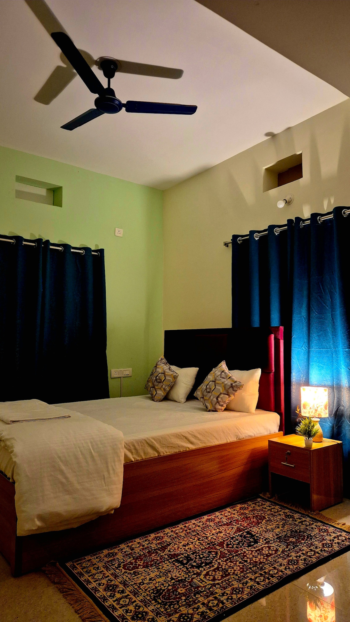 Solace - Friðsæl, nútímaleg stúdíóíbúð í gamla bænum, nokkrar mínútur frá Lingaraj-hofinu, flugvelli og lestarstöð. Njóttu sjaldgæfs opins þaks, útiveröndar, hlaupabands, skrifborðs og fullbúins einingaeldhúss. Einkagisting með nútímalegum þægindum með leiðsögn frá heimamönnum um hof, mat og ferðalög. Örugg húsnæði með eftirlitsmyndavélum í rólegu hverfi. Tilvalið fyrir þá sem heimsækja musteri, gesti á ferðalagi, viðskiptaferðamenn og einstaklinga sem leita að þægindum, öryggi og skjótum aðgangi að helstu stöðum.