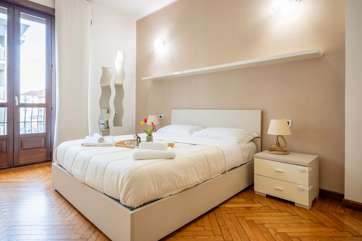 Lúxus og þægileg íbúð nálægt neðanjarðarlestarstöðinni Lingotto, verslunarmiðstöðinni 8Gallery, Lingotto Fiere, EATaly, bílasafninu og Valentino 's-garðinum við rómantíska árbakkann. Með 7 strætisvagna í minna en 200 m og innan við 15 mínútna fjarlægð frá miðborginni og söfnum hennar (Gam, egypska safnið ecc..). Staðurinn er notalegur og rúmgóður með öllum þægindum sem þú þarft á að halda. Fullkomin fyrir alla sem eru að leita að friðsælli en vel staðsettri íbúð til að gista í í Tórínó.