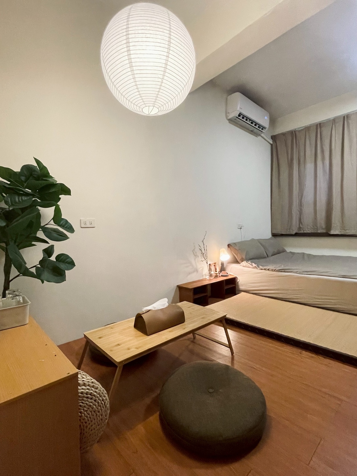 Við minnum þig á að lesa eftirfarandi áður en þú bókar, sérstaklega aðgengi gesta, til að hafa ekki áhrif á áhugamál þín! ------------------------------------------------------------ Björt, afslöppuð, notaleg og einn besti afslöngunarstaðurinn í íbúðinni á jarðhæð í japönskum stíl.Gamla íbúðin hefur verið enduruppgerð með einstakri náttúrulegri hlýju og er lítið land hitastigs og góðgæti þar sem hægt er að hægja á sér, lifa hægt og ferðast með smekk. Utan á jarðhæðinni sérðu lítinn garð með gróskumiklum forstofu, sitja á sófanum í stofunni síðdegis og horfa út í stórt glugga frá gólfi til lofts. Það er afslappandi tími þar sem sólarljós og gróska fléttast saman. Að kvöldi til verður kalt í garðinum. Með opnu eldhúsi og borðstofu er þetta einnig fjölskylduvæn eign og hentar fyrir auðveldar samkomur vina og fjölskyldna. Þetta heimili er hannað af „Good Lifestyle Proposal“. - . Hver hópur gesta verður djúphreinsaður og sótthreinsaður eftir að hann fer þannig að þér er velkomið að búa þar. .Herbergið er 30 fermetrar (100 fermetrar), herbergið er um 2,5-3 ping (8,3-10 fermetrar) . Fjölskylduvæn eign með ýmsum barnavörum. Vinsamlegast bókaðu tíma fyrir fram.