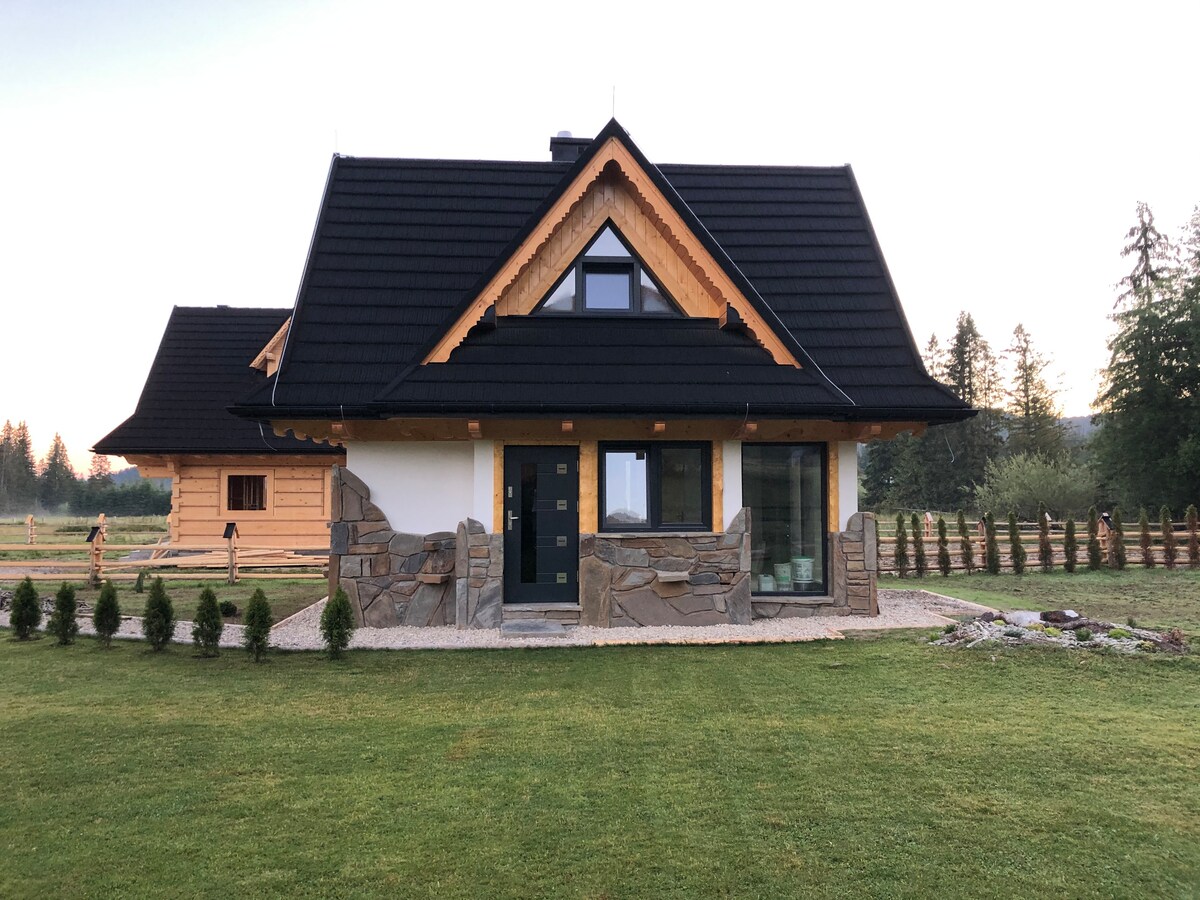 Rómantísk gisting í viðarbústað í fallegu þorpi umkringdu fallegum Tatra-fjöllum. Tvær sjálfstæðar íbúðir rúma allt að 24 manns í 8 svefnherbergjum og 4 baðherbergjum. Í rúmgóðum garðinum er hægt að fá arin, garðskála, sæti utandyra, katla, grill sem og klifurgrind, rennibraut og rólu fyrir börn. Eignin er með ótrúlegt útsýni yfir fjöllin og engjarnar í kring og lítill lækur rennur meðfram mörkum hennar.