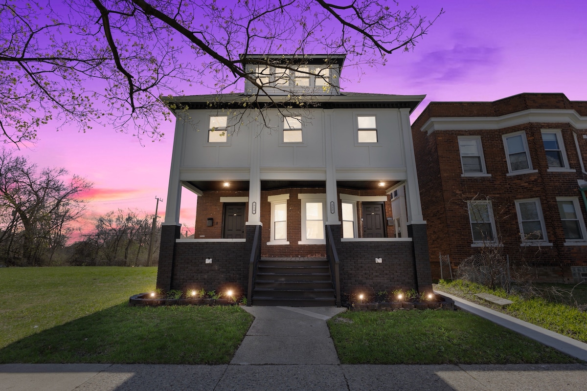 Fallegur staður í hjarta Detroit. PS Grand Getaways 2. staður. Fullkomið fyrir þá sem elska MIÐBORGIN, (5 mínútur í burtu) ÞETTA ER EKKI SAMKVÆMISHÚS. (AÐEINS 10 MANNS) Vinsamlegast leigðu sal ef þörf krefur. Frábær staður fyrir PAR SEM ERU ÞROSKUÐ OG EINUNGIS FYRIR FULLORÐIN eða vini til að koma saman í lúxus. Slakaðu á í heita pottinum á bakveröndinni, slappaðu af við eldstæðið á meðan þú grillar eða eldar í fallega lúxuseldhúsinu! Stemning í leikherberginu í kjallaranum! Hressaðu þig í lúxussturtum fyrir tvo eða slakaðu á í stofunni með kvikmyndakvöldi!