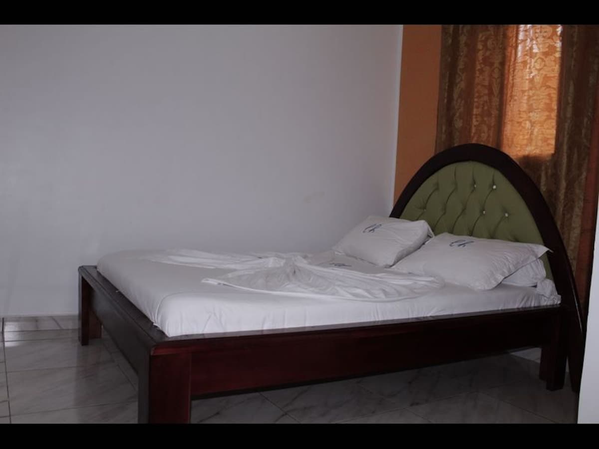 🏡 Verið velkomin í BAHO-bústaðinn! 🏡 📍 Staðsetning: Staðsett í hjarta Makepe, nánar tiltekið við „MAKEPE BM, Rue des Pavés“ — aðeins 2 mínútur frá aðalveginum! 🌟 Í nágrenninu: ✔ 5 mínútur frá almenningssjúkrahúsinu ✔ 10 mín frá Carrefour Market Logpom ✔ 10 mín frá Santa Lucia Mall (Bonamoussadi) ✨ Einstaklingsherbergi – Hagnýtt val fyrir hagnýta dvöl ✨ Einstaklingsherbergið er aðgengilegt og þægilegt og er tilvalið fyrir ferðamenn á leið sinni, nemendur eða stutta dvöl. Ómissandi rými, vel úthugsað og fullkomlega viðhaldið. 🛏️ Þægindi: ✔ Virk svefnherbergi með einu rúmi, náttborði og geymsluplássi ✔ Sérsala, fyrir aukin þægindi og næði ✅ Innifalið í gistingunni: ✔ Rafmagn innifalið, engin aukagjöld ✔ Þrif á þriggja daga fresti svo að eignin sé alltaf hrein og notaleg ⚠ Þvottaþjónusta í boði á staðnum (aukagjald) Þvottur, þurrkun og straujun (venjulegur þvottur eða blandaðar litir) 🔹 Aukaþjónusta: ✔ Hrað nettenging með ljósleiðara, tilvalin fyrir faglegar eða persónulegar þarfir þínar ✔ Öryggisgæsla allan sólarhringinn á staðnum ✔ Stöðug vatnsbirgðir þökk sé öruggri borholu Frábært virði fyrir peningana fyrir einfaldan, þægilegan og vel staðsettan gististað.