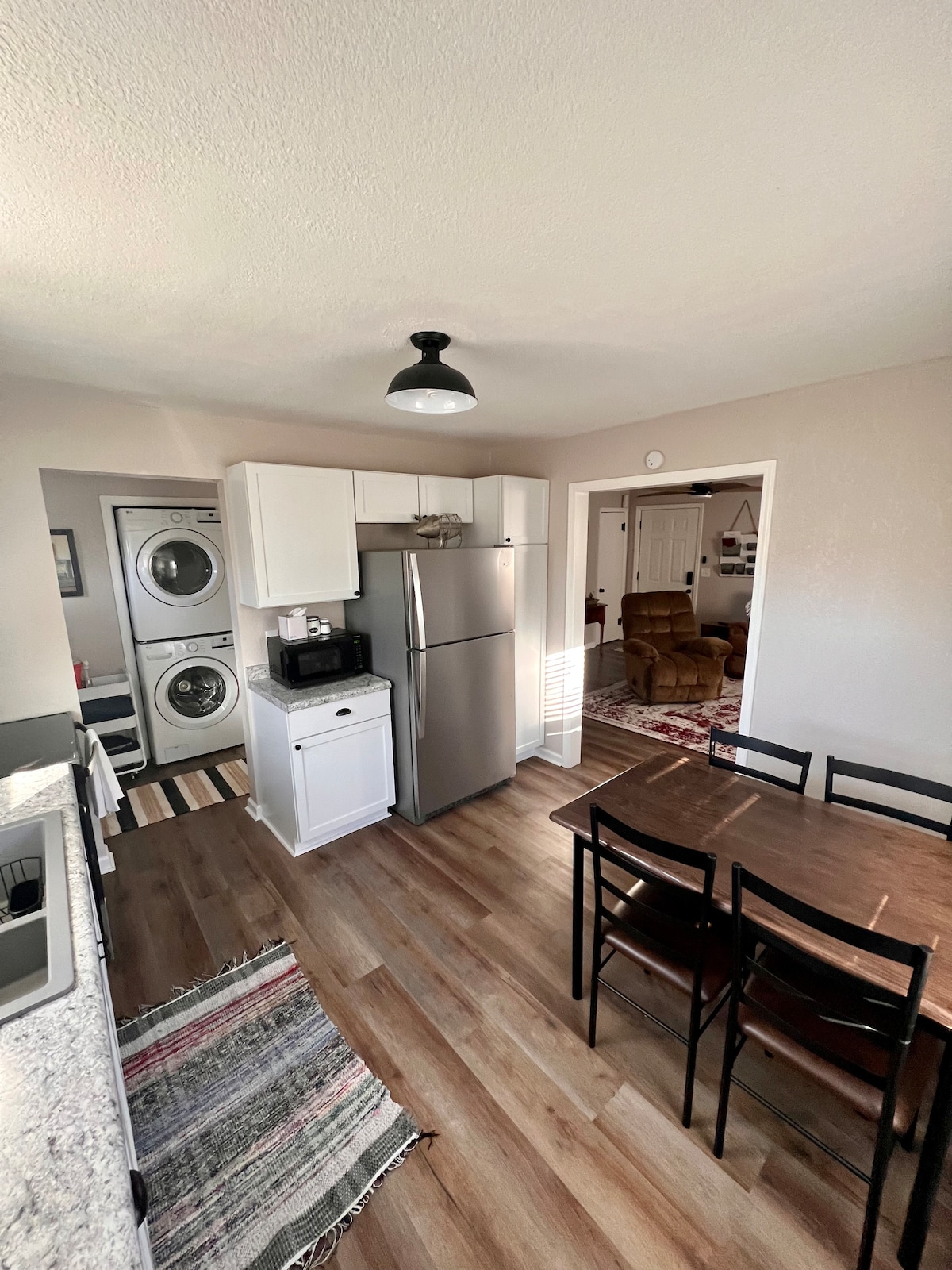 Nýuppgerð innrétting (við erum enn að vinna að utan!!) tveimur húsaröðum frá Walmart og tveimur húsaröðum frá Washington Street. Góð bílastæði á og við götuna. Dásamlegt opið gólf til að hýsa fjölskyldu eða bara þægilega gistiaðstöðu. Við verðum eins gæludýravæn og við getum en láttu okkur endilega vita ef þú kemur með gæludýr (tegund, stærðir og númer) áður en þú bókar. Við erum með teppi í forstofunni og svefnherbergjunum. TAKK FYRIR!