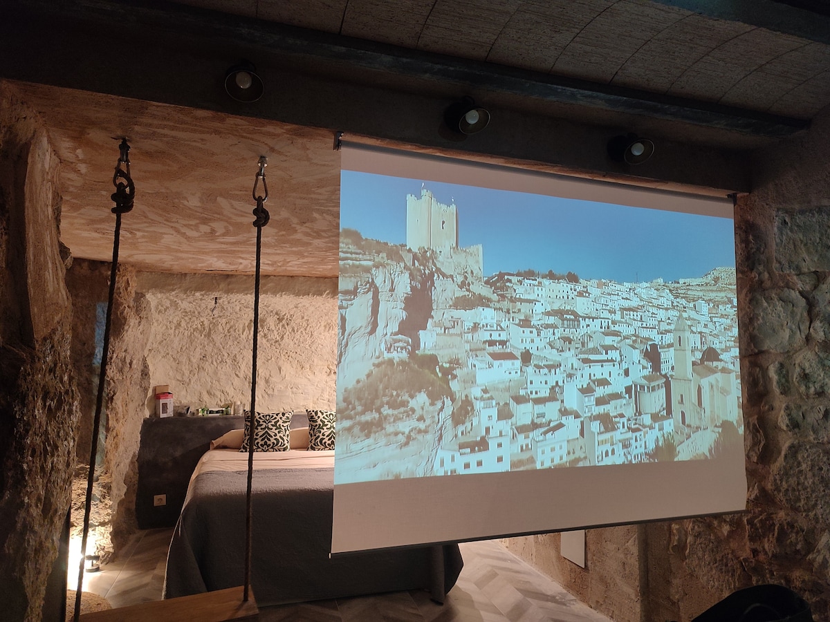 KAVERNO es una cueva con siglos de antigüedad, que fue rehabilitada íntegramente en 2022. Consta de 80 m2, divididos en tres plantas, una primera planta, con un amplio salón vanguardista donde se fusiona con una cocina de diseño abierta, completamente equipada y un espectacular jacuzzi privado climatizado. En la segunda planta nos encontramos su dormitorio con una cama KING SIZE, y vistas a la Hoz del río Júcar.En la planta ático, se situa una terraza privada, donde se ubica una piscina privada.
