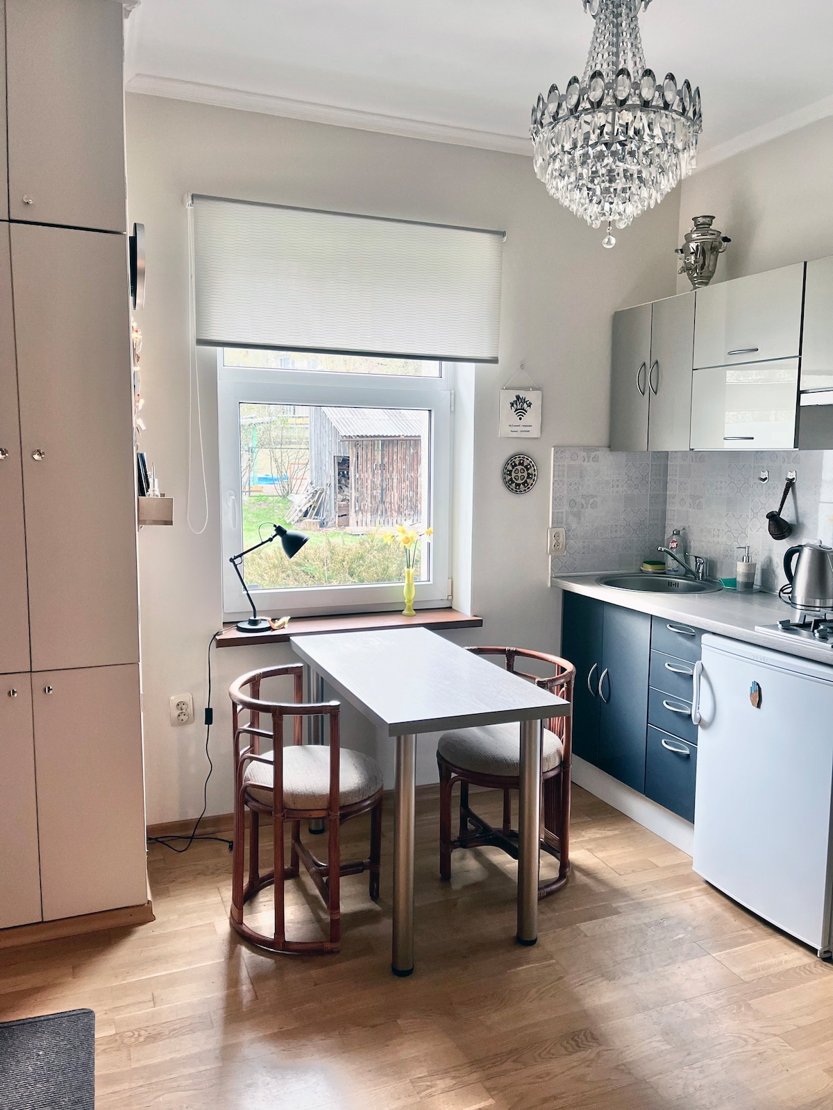Notaleg sólrík íbúð í miðborginni með frábæru útsýni yfir skóginn og vatnið. Njóttu glæsileika skandinavíska innanrýmisins með fallega skreyttum glænýjum húsgögnum. Fullkomið fyrir frí og fjarvinnu. Ókeypis bílastæði og sjálfsinnritun/-útritun. Verslanir eru í aðeins tveggja mínútna göngufjarlægð. Íbúðin er sólrík og mjög hlýleg. Fullkomið fyrir allt að þrjá einstaklinga. Búin með viftu.