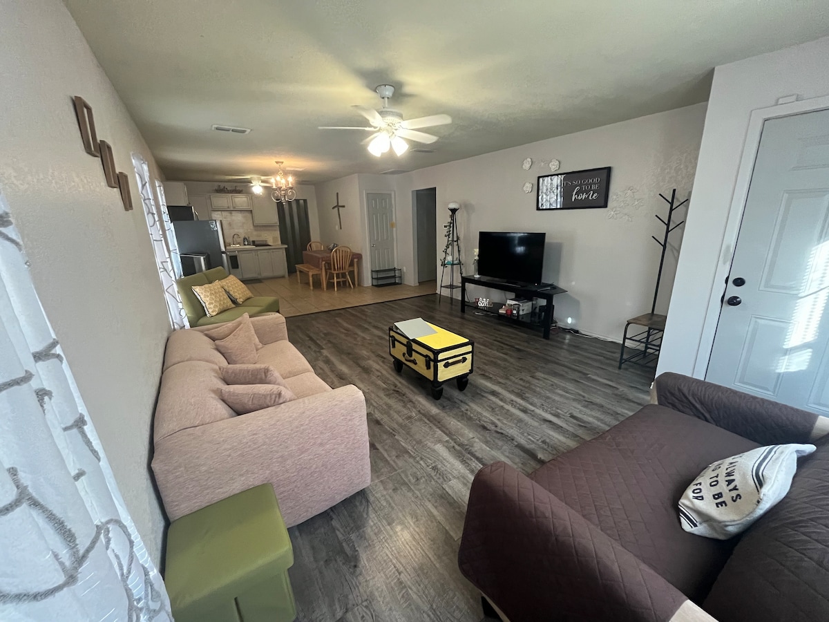 Njóttu dvalarinnar á heillandi sveitaheimili okkar í miðbæ Floydada. Heimili okkar er aðeins einni húsaröð frá Jimmy Lou Stewart-garðinum og tekur á móti þér með 2 svefnherbergjum og 1 baðherbergi. Stofa er einnig búin svefnsófa. Aðgengi að bæði þvottavél og þurrkara. Sjónvarpið er með streymisþjónustu þér til skemmtunar. Í bakgarðinum er stórt tré sem veitir nægan skugga fyrir útivist. Tvö bílaplan í bakgarðinum.