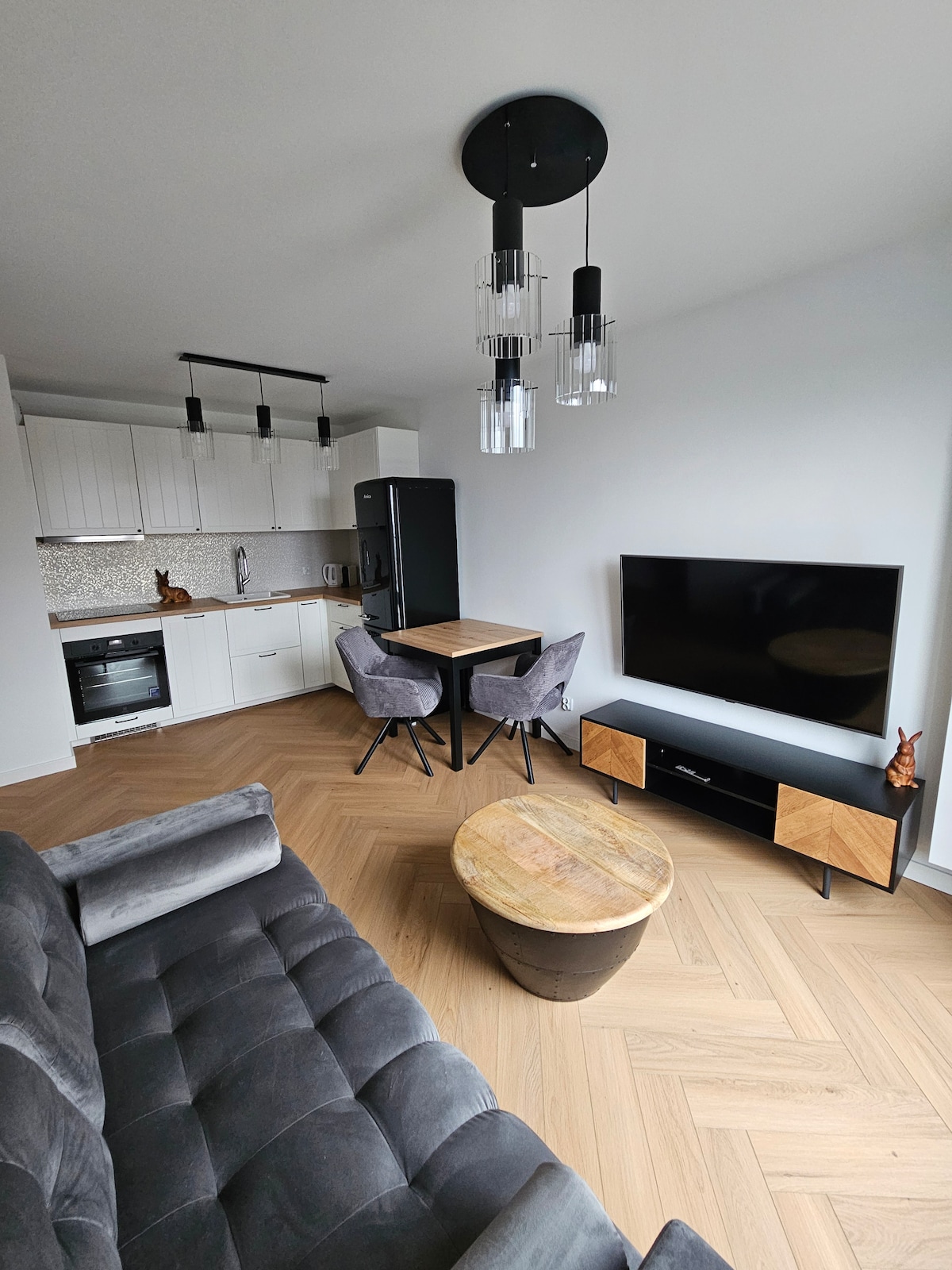 Fullbúin stúdíóíbúð. Hár staðall. Veggirnir eru skreyttir með hágæða hönnunarveggfóðri. Íbúðin er nýlega endurnýjuð. Ókeypis bílastæði neðanjarðar. Nálægt: 1. 3 mínútna gangur í heilsugarðinn. 2. 15 mínútna göngufjarlægð frá Orientarium Park, Łódź Zoo, fallegum grasagarði og einum stærsta vatnagarði „Aqua Park Fala“ 3. 5 mínútur með bíl eða 30 mínútur með því að ganga Atlas Arena - staður tónleika og menningarviðburða. 4. 5 mínútur með bíl Manufaktura