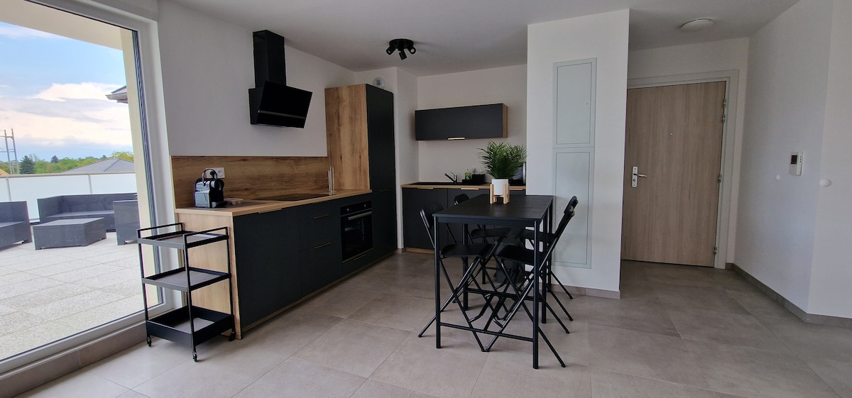 Rúmgóð verönd við Square F2, bílskúr nálægt Colmar