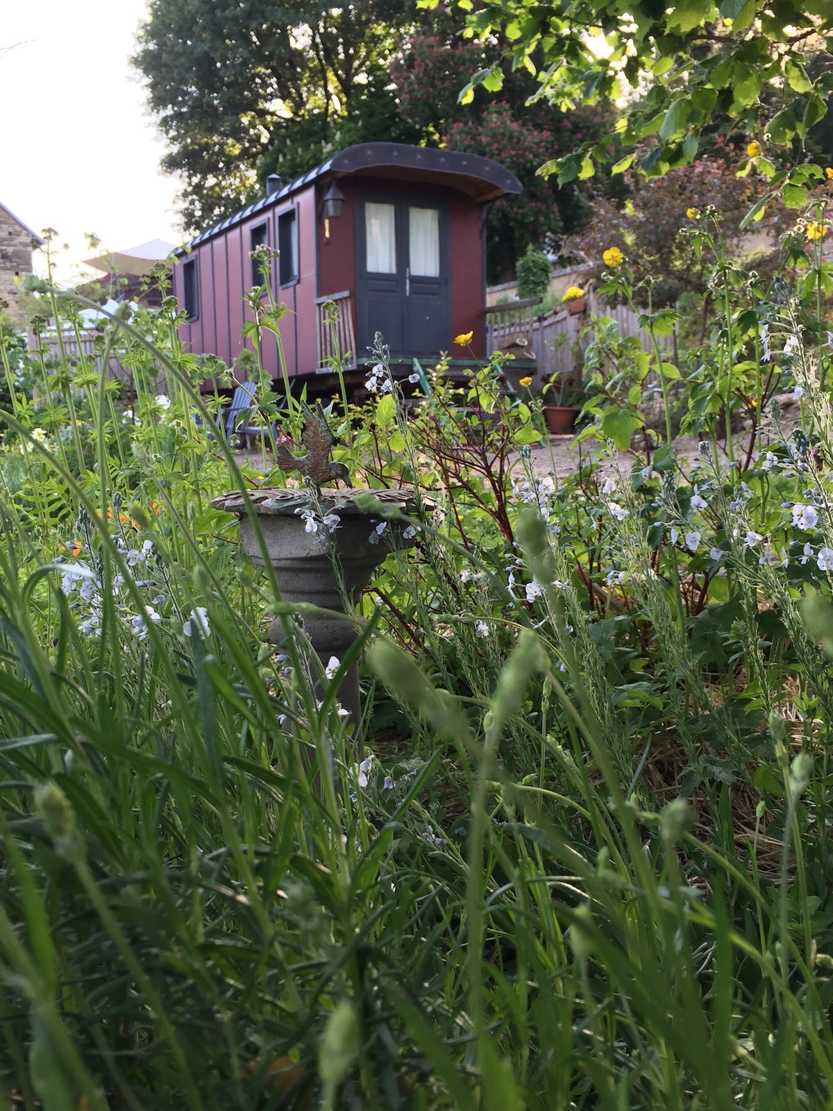 Chalet & caravan private jacuzzi bathroom vines view