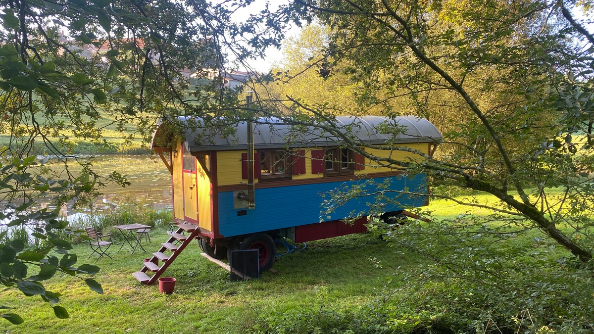 Rómantísk og einstök dvöl í einstöku, sögulegu umhverfi í miðri náttúrunni. Hjólhýsið býður upp á ógleymanleg augnablik í einfaldleika og áreiðanleika við rætur Château de La Flocellière í Vendee, nálægt Puy du Fou. Upplifðu ótrúlega upplifun með virðingu fyrir umhverfinu með þurru salerni. Vatn, hiti og rafmagn. Töfrandi vakning á tjörn. Dekraðu við þig í paradís til að kynnast töfrum, þögn og fegurð.