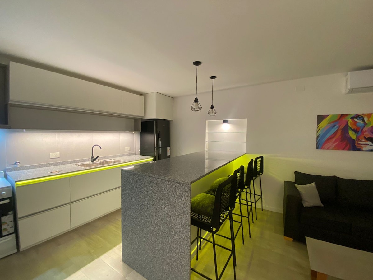 Mirasoles Suites eru 2 stúdíóíbúðir með baðherbergi og borðstofu; allt glænýtt. Staðsett í einkahverfi (Mirasoles Av. Fair 655, Monte Grande), þar sem er rólegt, friðsælt og öruggt. Þú getur gengið um götur hverfisins og notið kyrrðarinnar og öryggisins sem það veitir, en þar er öryggisgæsla allan sólarhringinn og rafmagnsgirðing utan um hverfið.