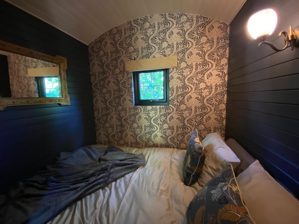 This countryside retreat is the perfect romantic escape, just a 35 minute taxi/train ride minutes from London. Unwind in your private luxury hot tub, sip on a complimentary bottle Champagne under the stars, and wake up to breathtaking views of rolling fields and wildlife. Our handcrafted shepherd’s hut blends rustic charm with modern comfort, offering a king-sized stargazing bed, a cozy fire-lit deck, and a luxury bathroom, all set in a peaceful meadow.