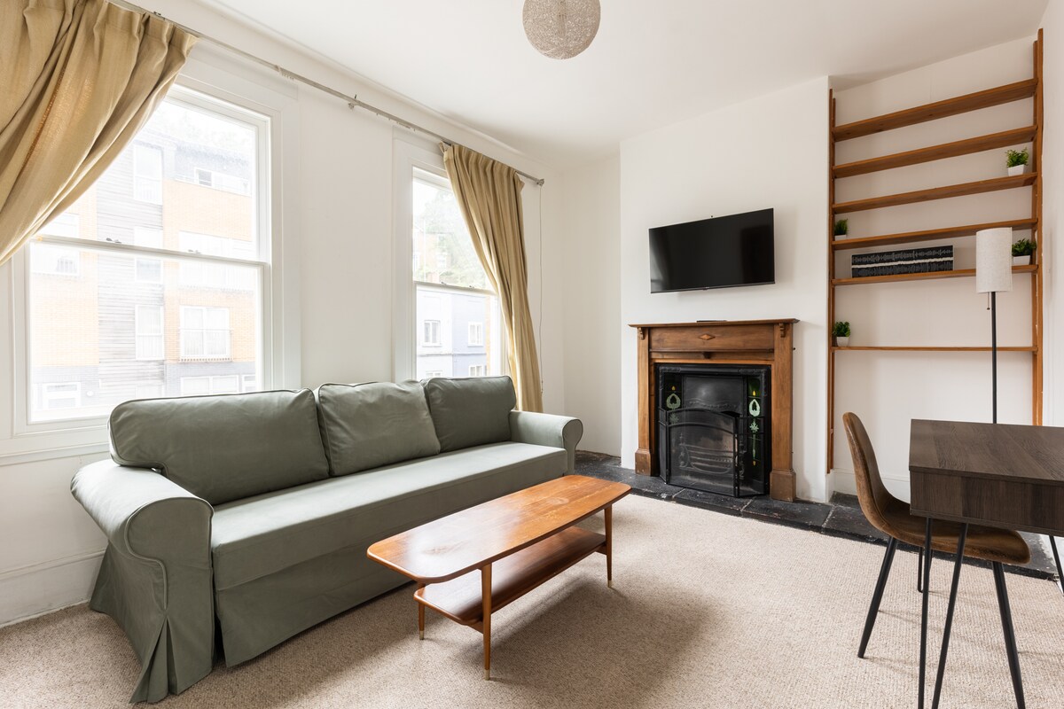 Komdu og vertu í yndislegu íbúðinni okkar í Nunhead! Fallega skreytt, með yndislegri list og plöntum í öllum herbergjum, var fullkomlega staðsett til að skoða London. Það er stór stofa með skrifborði, sófa (sem er aukasvefnsófi í boði) og borðstofuborði, aðskildu svefnherbergi, baðherbergi og eldhúsi. Nunhead og Peckham í nágrenninu eru bæði svöl og svæði sem eru á uppleið. Hér er nóg um að vera. Frá báðum stöðvum eru lestir til miðborgar London - Victoria, St Pancras og London Bridge.