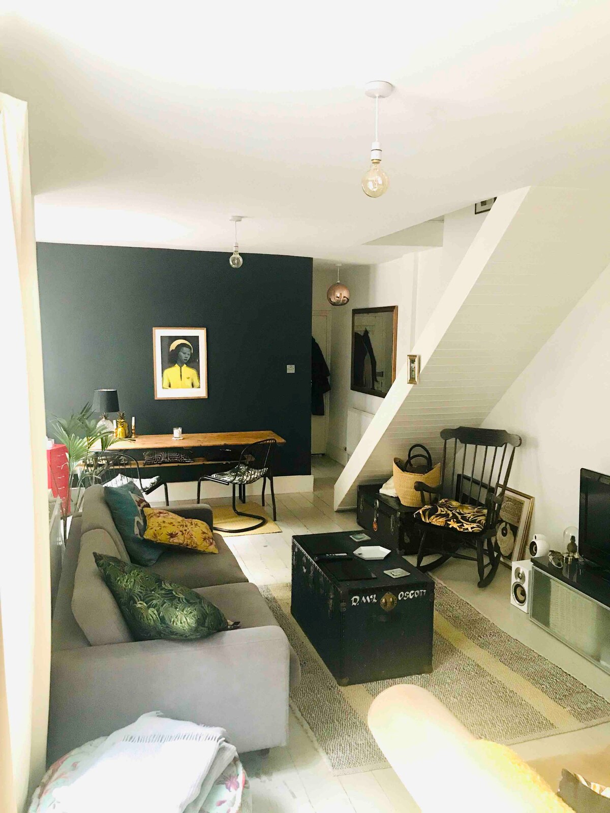 Þetta er földuð griðastaður - róleg, tveggja hæða íbúð sem er falin aftast í viktorísku húsi í Austur-London - mjög nálægt vinsælum stöðum: Victoria Park, Hackney Wick, Ldn Fields og Broadway Market - og aðeins 15 mínútur frá Oxford Street í miðbænum með neðanjarðarlestinni. Ég bý í húsinu þegar ég er ekki með gesti og allir segja að þetta sé einstök og hlýleg eign! Svefnherbergið sem er sýnt er aðeins fyrir gesti og er algjörlega út af fyrir sig. Eignin er einnig mjög hljóðlát með tveimur einkaútisvæðum.