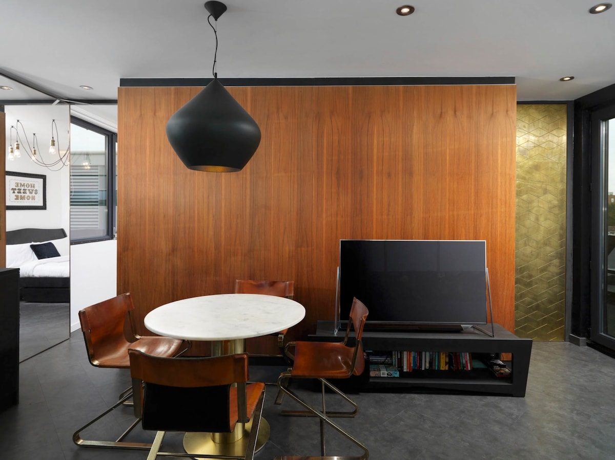 Staðsett aðeins nokkrum sekúndum frá Shoreditch high street stöðinni og við hliðina á bæjarhúsinu við Redchurch Street sem er þekkt fyrir sjálfstæð tískuhús og tískuverslanir. Loftíbúðin er staðsett í 120 ára gömlu, fyrrverandi framandi dýravöruhúsi og var fullgerð í maí 2019 eftir umfangsmikla 18 mánaða framlengingu og endurbætur, innréttuð með vönduðum, nútímalegum, handvöldum friðlýsingum með nokkrum gömlum frummyndum.