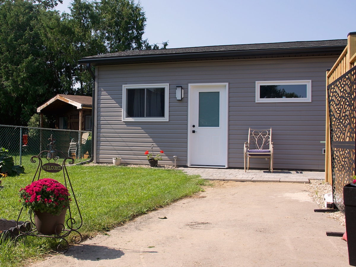 Staðsett í hjarta Old East Village í London Ontario. Þetta gestahús í bakgarði fallegrar skóglendi er afskekkt frá götunni og nágrannar skilja það eftir í rólegu og óslitnu fríi. Útiverönd, heitur pottur og setustofa í boði fyrir ljúfa staði á sumarkvöldum. Í nokkurra mínútna fjarlægð frá sumum af bestu skemmtunum og veitingastöðum sem London hefur upp á að bjóða! Rúm af queen-stærð í svefnherbergi. Dragðu sófann út í stofu.