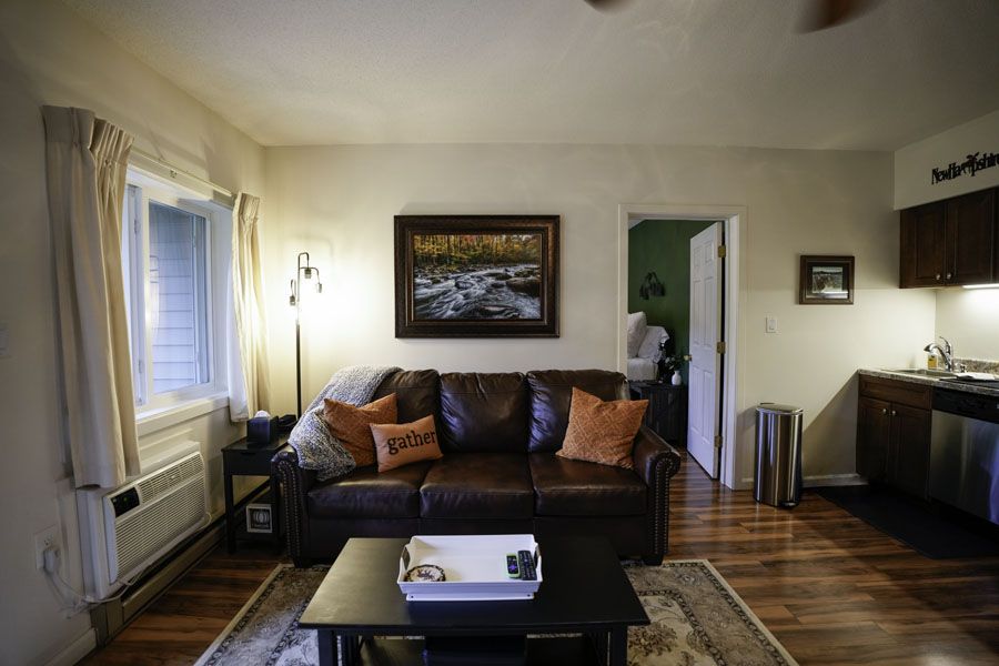 Stylishly renovated Studio hotel resort condo sleeps 2. Seated at the base of Loon Mountain’s South Peak, in New Hampshire's gorgeous White Mountains. Enjoy nature, hiking and lovely mountain scenery! Great area dining, and outdoor activities. Indoor pool and Jacuzzi are open and located in our facility. Great restaurants within walking distance. Free shuttle bus service to Loon Lift gate. Pemigewasset River in back. Edit