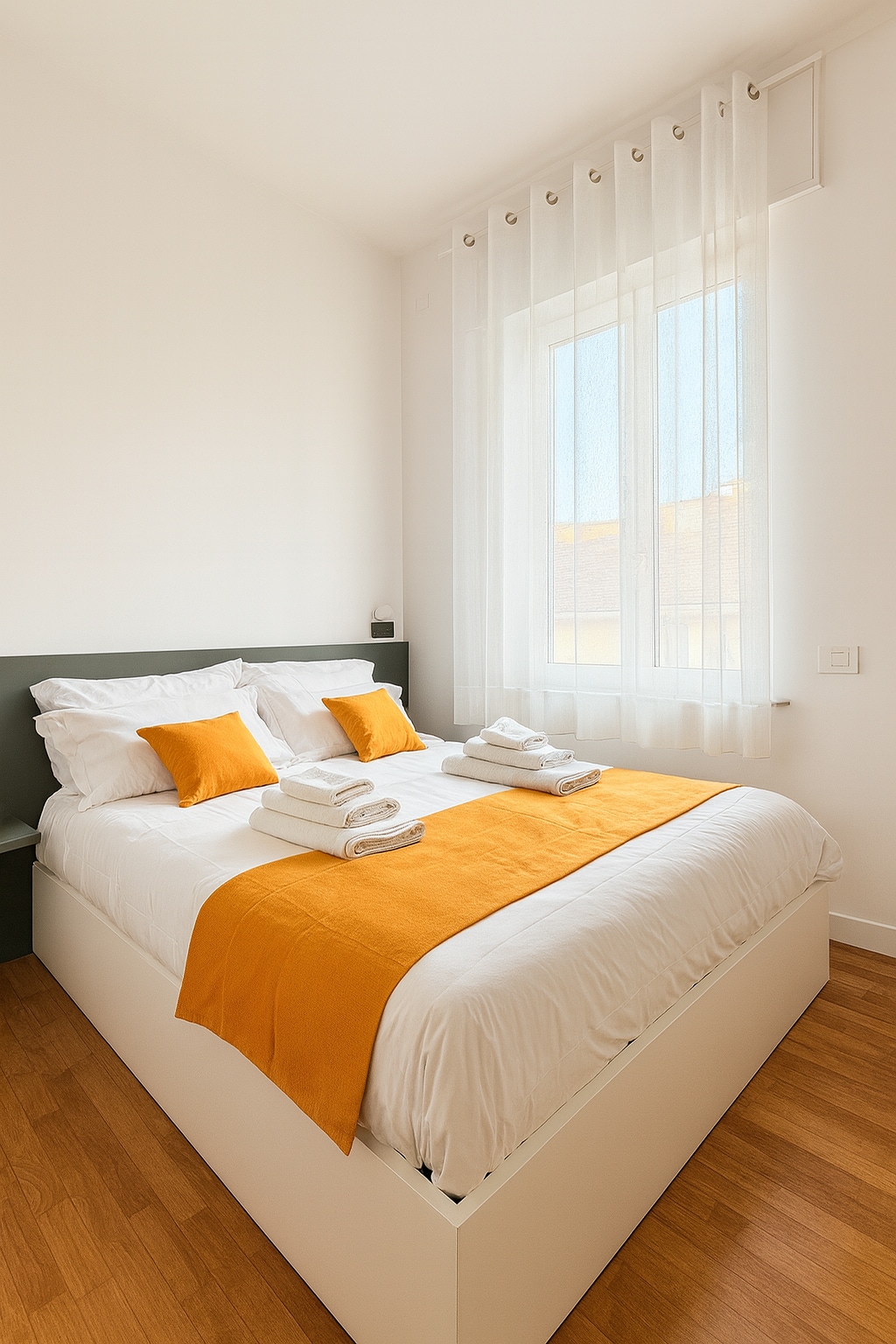 Slakaðu á í þessu friðsæla og heillandi eins svefnherbergis íbúð sem er meira en 50 fermetrar að stærð og er skemmtilega uppgert. Vel þjónað með flutningi. Það er í um það bil tíu mínútna fjarlægð frá aðallestarstöðinni og gerir þér kleift að komast hratt að lestum, flugvélum og neðanjarðarlestinni. Það er staðsett við rólega og rólega götu með bar, matvöruverslun og apótek í stuttri göngufjarlægð. Eldhúskrókurinn er með öllum tækjum. Þráðlaust net, sjónvarp og þvottavél eru einnig í boði. CIN: IT015146C2D2ZJQXH8