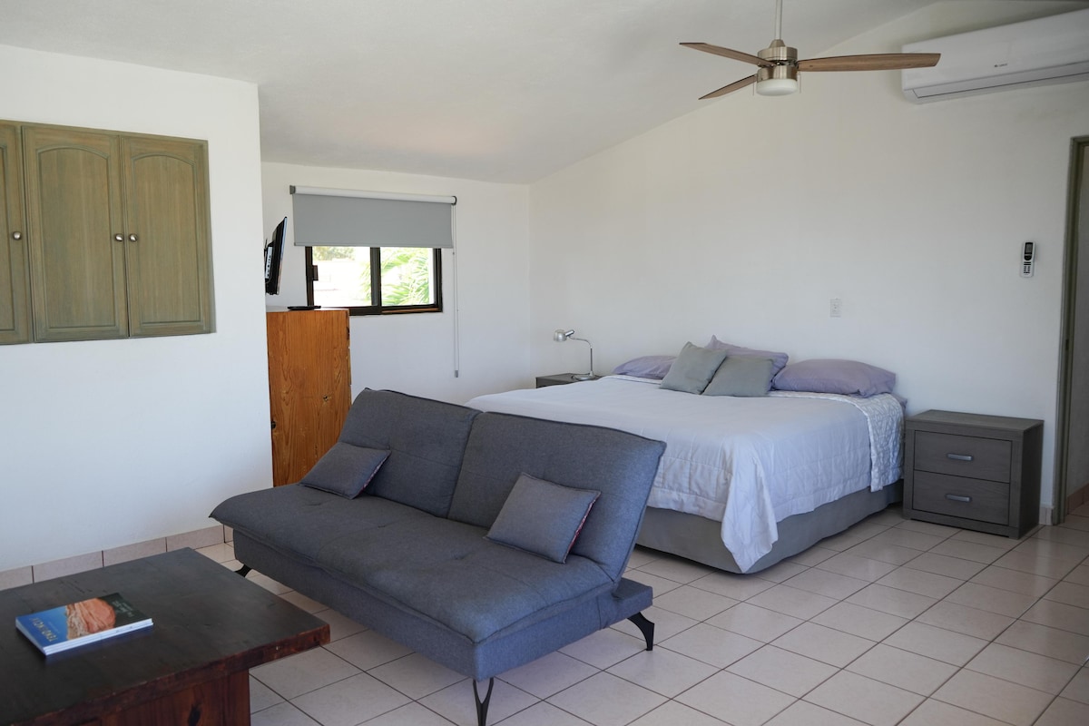 Lítil íbúðarhús með sólarknúnum stúdíói sem er staðsett miðsvæðis nálægt köfunarverslunum, matsölustöðum og ströndinni og þar er pláss fyrir allt að þrjá einstaklinga með stórum svefnsófa í boði. Þessi eining er ekki ætluð börnum yngri en 10 ára. Takmörkuð loftræsting er í boði og hægt er að nota hana í allt að 12 klst. á dag, að meðtöldum næturtíma, getur verið takmarkaðri á skýjuðum dögum. Bílastæði í boði fyrir lítil ökutæki og er deilt með Casa Verde, sem er fyrir framan Casa Mexicana. Gistináttaverð er fyrir tvo gesti.