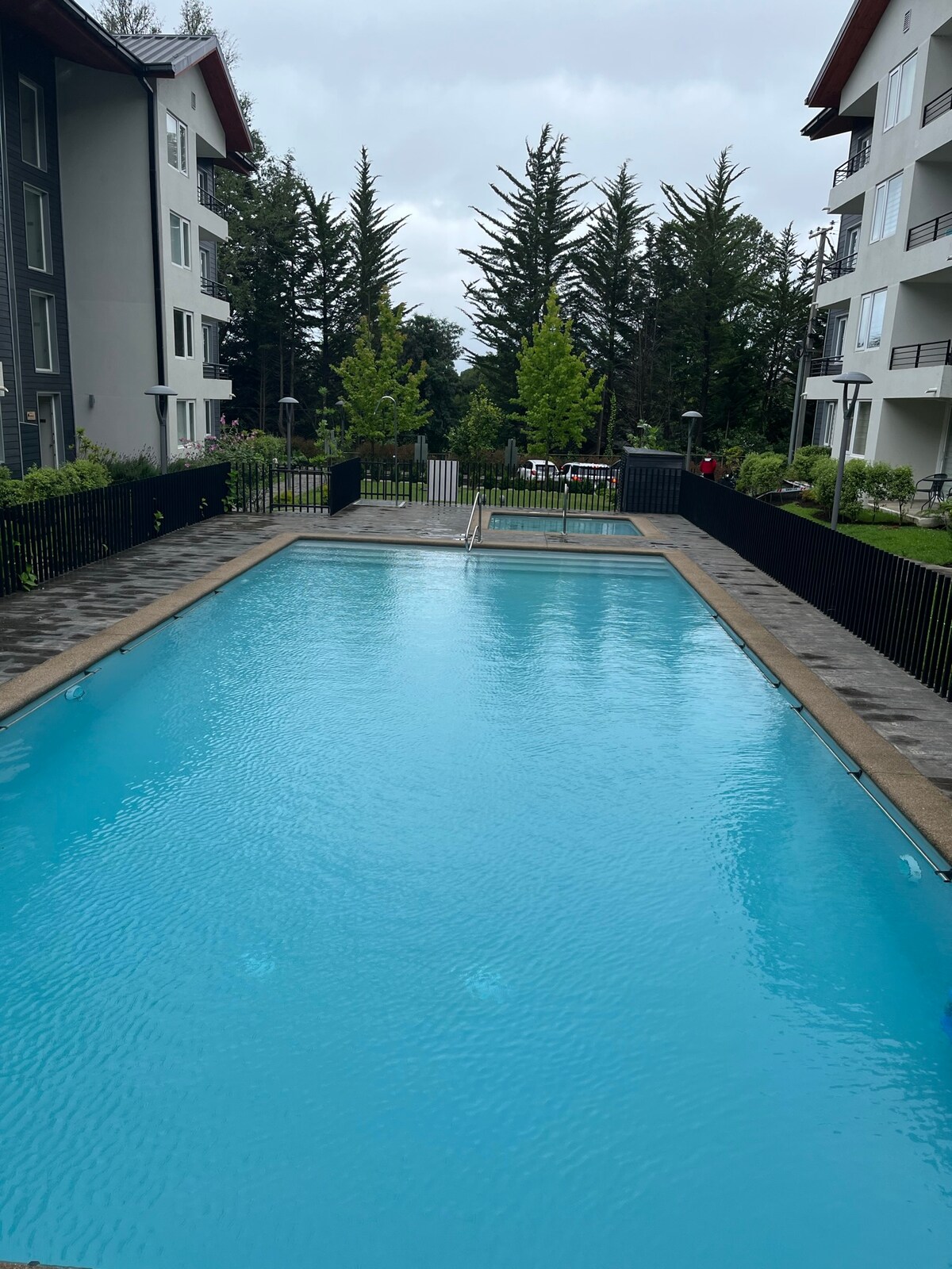 Notaleg íbúð með einu svefnherbergi og baðherbergi, stofu og borðstofu og opnu eldhúsi í einkaíbúð með fallegum görðum. Fullkomið fyrir 2 gesti. Njóttu: 🏊♂️ Sundlaug sem hentar krökkum og fullorðnum 🏰 Leiksvæði fyrir börn 🌲 Klúbbhús 🧖♂️ Gufubað og heitur pottur (aukagjald) 📍 Tilvalin staðsetning, nálægt: 🏘️ 5 mín frá miðbæ Pucón 🏞️ Strendur ⛷️ 25 mín frá skíðamiðstöðinni ♨️ 40 mín frá heitum uppsprettum Huife 🌿 25 mín frá grasagarði 🌄