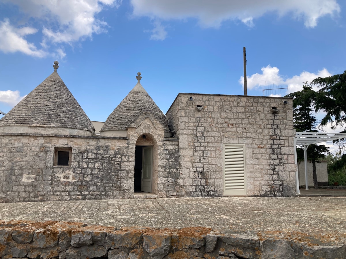 Endurnýjað trullo á friðsælum stað í sveitinni með ósviknum stíl. Flestar innréttingarnar eru endurunnar eða gömul húsgögn endurbyggð á nútímalegan hátt. Það er 1 svefnherbergi og 1 svefnsófi í stofunni. Nýuppgert baðherbergi með sturtu,fullbúnu eldhúsi,þvottavél og miklu plássi utandyra (ein verönd aðgengileg frá svefnherberginu og ein hinum megin með grillaðstöðu Gestum hinna tveggja eignanna er deilt með aðgangi að sundlauginni (ekki utanáliggjandi)