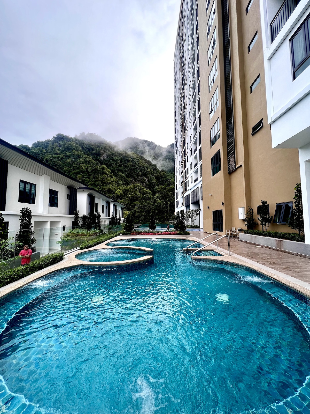 Heimagisting okkar er hönnuð með nútímaþægindum og er staðsett á efri hæðinni (með fjalla- og sundlaugarútsýni) sem veitir þér notalega og heimagistingu fyrir fjölskyldu þína eða vini. Við bókuðum hjá okkur og ábyrgjumst afslappandi dvöl með hreinlæti á hóteli og fullkomnum þægindum svo að þér líði eins og heima hjá þér. 📍Staðsett á Sunway Onsen Suites, Ipoh (Göngufæri við Lost World of Tambun)