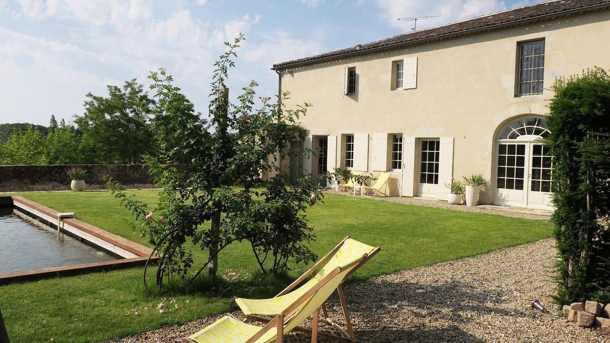 Situé en extrémité d'une longère en pierre typique de l'entre deux mers, sans vis à vis, cette maison de campagne vous offre un panorama sur les prairies entourant le petit hameau de trois maisons. Le logement est un ancien gîte rural fraîchement remis au goût du jour pour la location Airbnb, avec l'ajout d'une petite piscine creusée. Vous serez charmé par le calme et la sérénité de ce lieu tout à fait exceptionnel. Déconnectez vous pour mieux vous retrouvez.