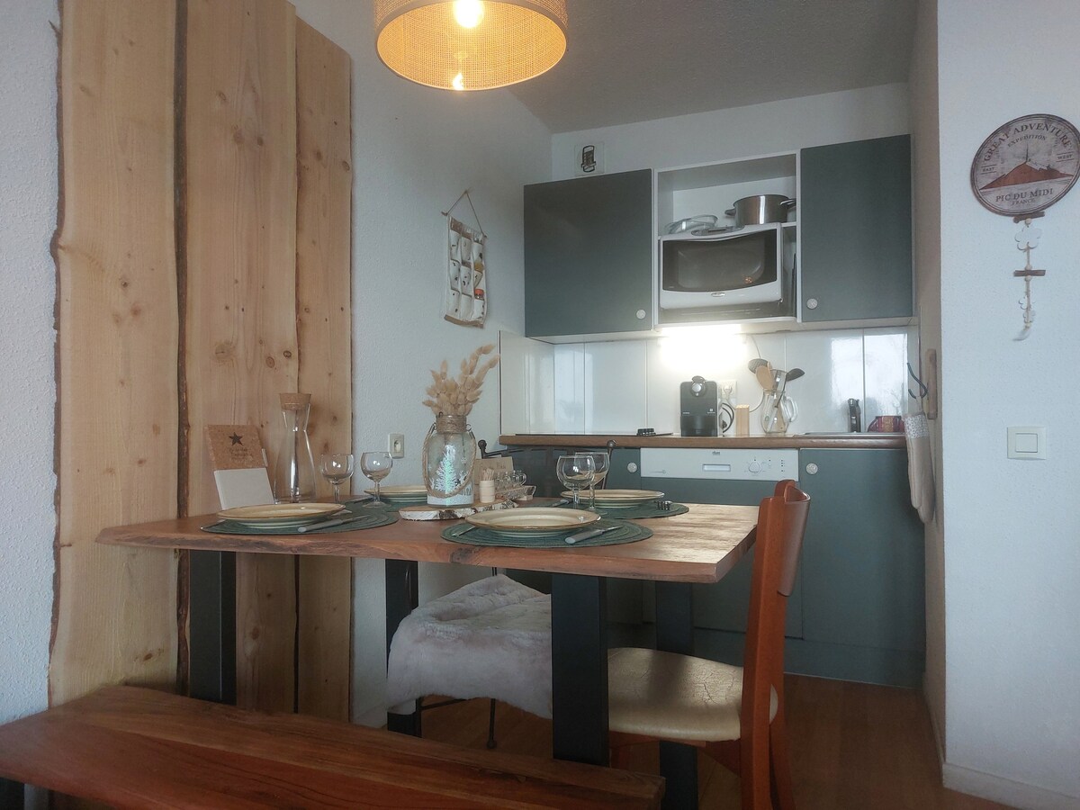 Íbúð í nýlegu „Pic du Midi“ húsnæði sem samanstendur af stofu með svefnsófa, svefnherbergi með hjónarúmi 160 cm, salerni, baðherbergi, verönd sem snýr í suður með fjallaútsýni. Eldhús: ísskápur, eldavél, uppþvottavél, örbylgjuofn, ketill, Nespresso-kaffivél. Sjónvarp, ryksuga, skíðaskápur og yfirbyggð bílastæði. Húsnæðið er með upphitaða sundlaug, líkamsræktarstöð með ókeypis aðgangi og þvottavél og þvottavél. Tracks í 3 mínútna göngufjarlægð.