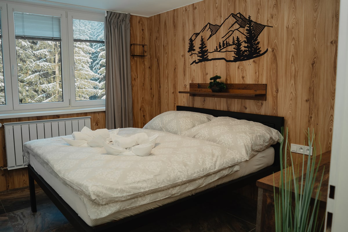 Stökktu í fjölskyldu- eða rómantískt frí í Chalet Wolf, töfrandi kofa í Tatra-skóginum. Alveg ótengdur rafkerfi og knúinn sólarorku (á veturna þarf að nota rafmagn með hugarfesti, rafal gæti verið nauðsynlegur). Búðu við stórkostlegu útsýni yfir Tatrafjöllin, sólsetrum, skógarþögn, notalegum kvöldum við arineldinn og göngustígum frá kofanum. Slakaðu á í heita pottinum undir stjörnunum. Skíðasvæði innan 25 mínútna aksturs. Mælt með 4x4 bíl. Heitur pottur + 80 evrur/dvöl.
