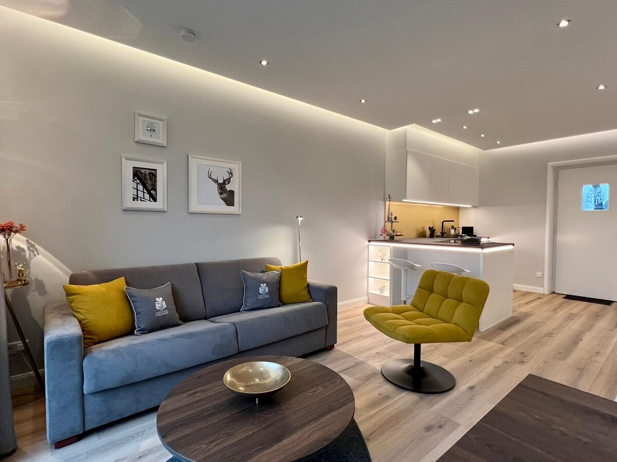 Lichtdurchflutetes ca. 35 qm großes Apartment im Hotelbetrieb bestehend aus einem großen Wohn- / Ess- und Schlafbereich mit gemütlichem Doppelbett und separatem Badezimmer (Tageslichtbad) mit Dusche und WC. Das Apartment verfügt über Fußbodenheizung und eine ausgestattete kleine Küche (Mikrowelle, Herd, Kühlschrank, Spülmaschine, Toaster, Nespressomaschine...). An die tollen großen Fensterfronten schließt sich eine eigene große Sonnenterrasse mit Outdoormöbeln an.