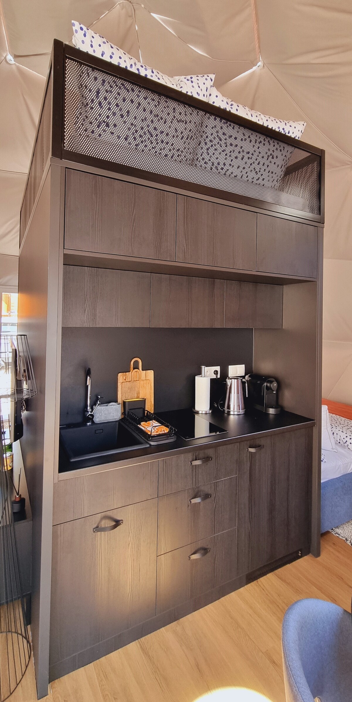 4 Elements er þögn, fjöll, gufubað og nálægð við náttúruna – hvíldin hefst hér frá fyrstu stundu. Það eru 4 hvolfhús og 4 júrt-tjöld með baðherbergi, þægilegum rúmum og einkaverönd. Tíminn líður hægt með bókum, borðspilum og varðeld. Við útvegum ljúffengar morgunverðarkörfur við dyrnar ef óskað er eftir því. Tilvalið fyrir fjölskyldur, pör og gæludýr. Nálægt göngustígunum, Czarna Góra og lóninu.