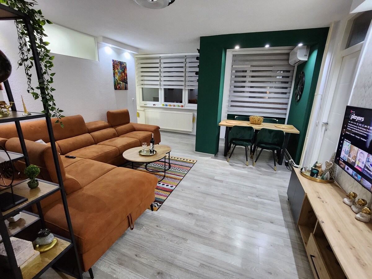 Orlofsíbúð og stofa, það hefur allt sem þú þarft. Íbúðin hefur nýlega verið enduruppgerð og allt í íbúðinni er nýtt. Frábær staðsetning, nálægt mörkuðum, apótek, markaður/markaður, veitingastaður, chevabjinica, bakarí, kaffihús, pósthús. Það eru tvö sjónvörp, kapalsjónvarp og NETFLIX Nærri Pannonian-vötnunum, í 13 mínútna göngufæri. Nálægt Gradina sjúkrahúsinu, 2 mínútur í göngufæri. Hotel Mellain, Ljeciliste Uni Bristol, líkamsræktarstöð, ráðstefnusalir hótelsins í 9 mínútna göngufæri. Mjög þægilegt rúm til að sofa í Internethraði 50Mbit/s