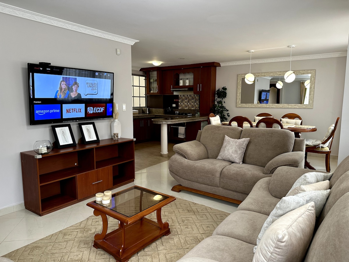 Escape to a luxurious paradise in Baños de Agua Santa with our stunning 3BR Airbnb. Enjoy breathtaking mountain views, river access, and a BBQ zone for outdoor entertaining. With a fully equipped kitchen, and private parking, our home is perfect for families, couples, or groups of friends. Just a short drive to downtown Baños and natural attractions like Pailón del Diablo and Treehouse, our Airbnb is the perfect home for your next adventure. Book now and experience the beauty of Baños!