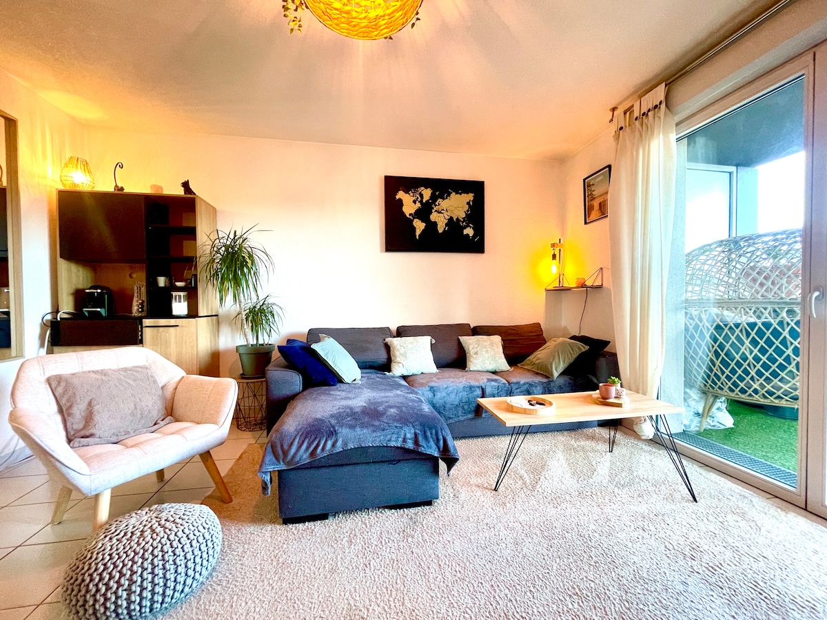 Slakaðu á á þessu rólega og stílhreina heimili. Leggðu töskurnar frá þér og njóttu dvalarinnar sem best. Vidailhan-hverfið í sveitarfélaginu Balma er griðastaður fyrir friðsæld við hlið Toulouse í iðandi sveitarfélagi. Hún er nýstárleg með tilliti til umhverfisins og er hönnuð til að bjóða íbúum betri lífsgæði í rólegu umhverfi.