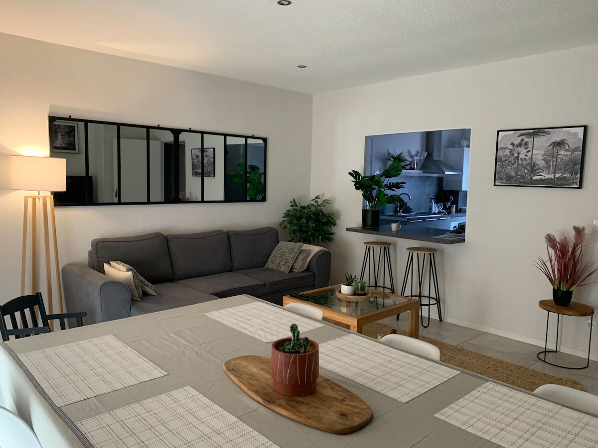 Profitez d'un logement 2 pièces élégant et central, refait à neuf avec isolation, situé à 2 min à pied de la Gare, 8 min du centre historique, parking gratuit. Wifi fibre espace bureau Tv. Cuisine équipée avec tout le nécessaire, lave linge, lave vaisselle. Non fumeur. Situé au 2eme etage au calme un bel immeuble avec digicode. Accès self check in. Bagage peuvent être mis à la cave en cas d'arrivée avant l'heure prévue.